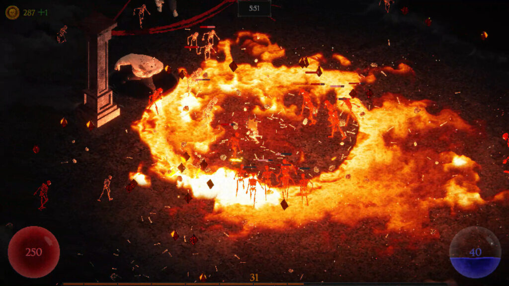 Each run lasts roughly twenty minutes and builds toward intense boss encounters representing inner fears rather than traditional monsters. Combat stands out thanks to a custom fluid-simulation fire system that gives spells a strong physical presence on screen.